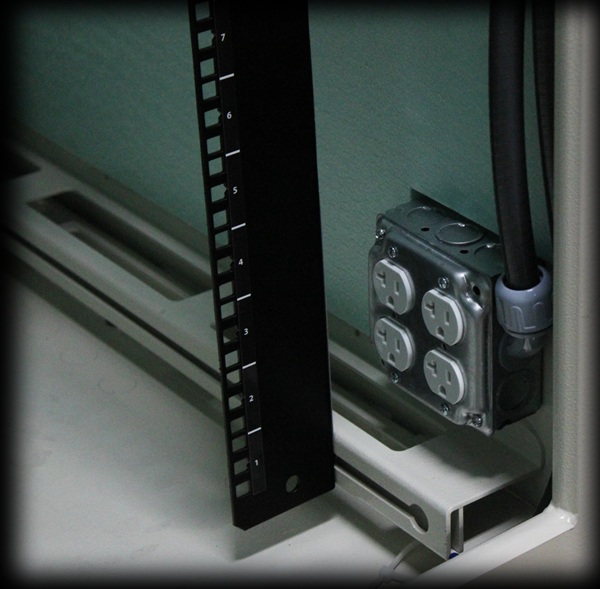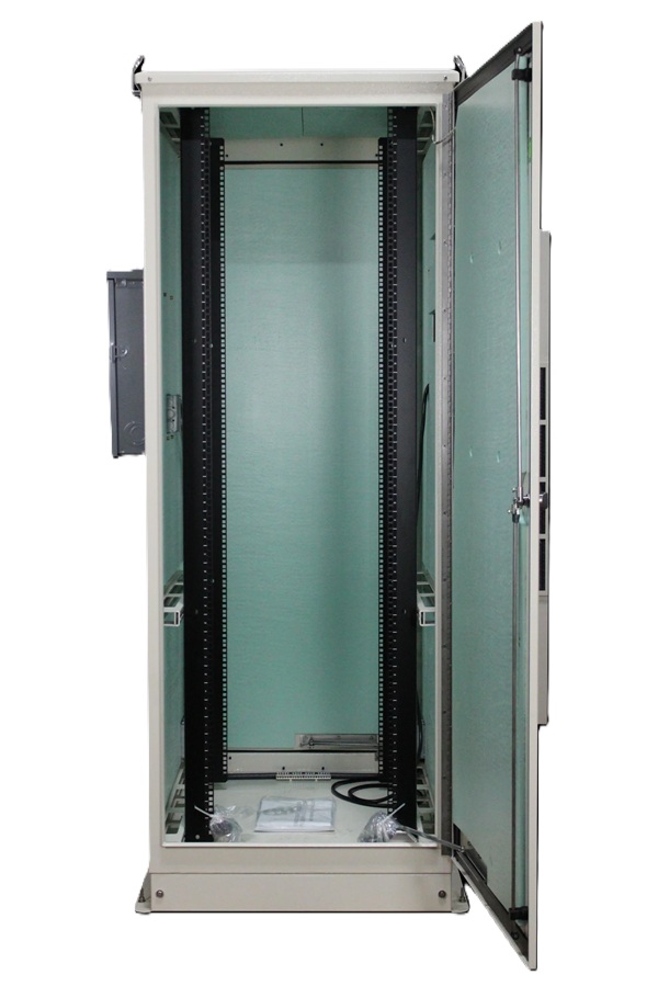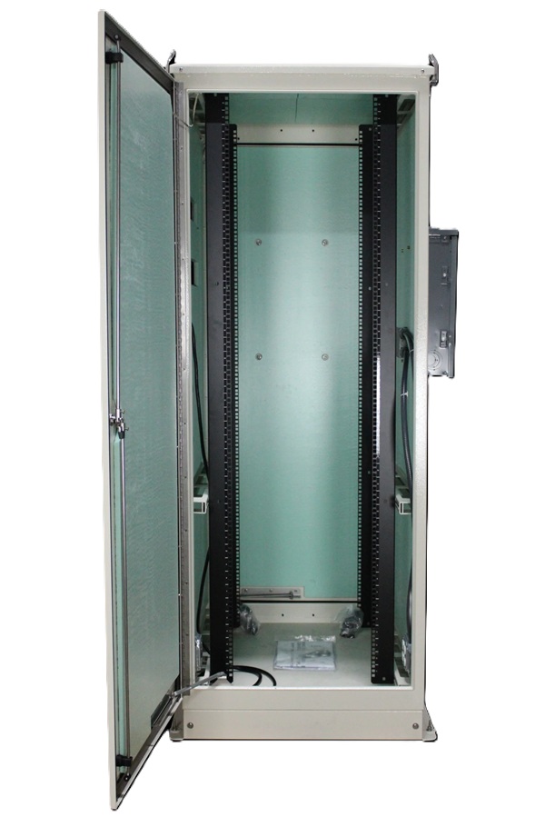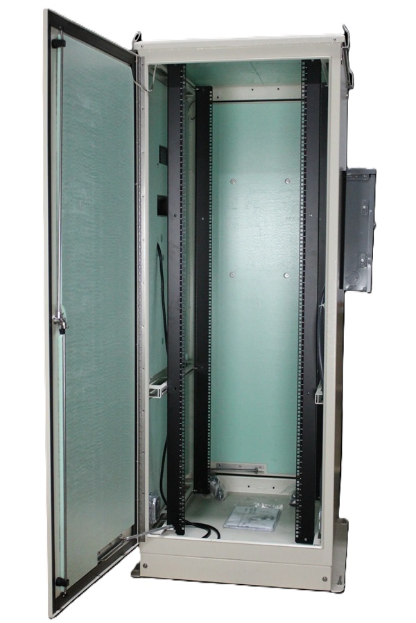 - Capacity: 42 rack units (RU) of vertical equipment space. The enclosure comes with one set of adjustable 19-inch or 23-inch rack rails.